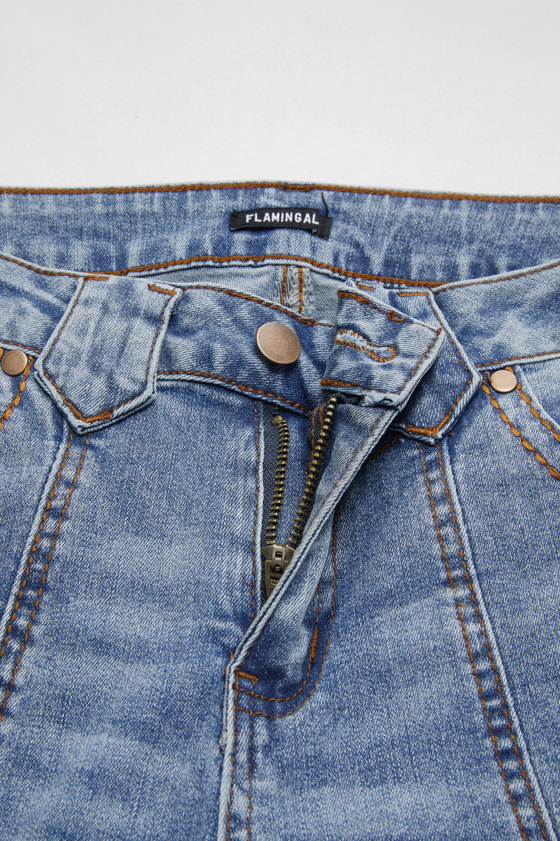 Stitch as the specific sewing technique creates decorative elements that contribute to the overall design of garments; Button design makes it more fun and vertical; Real pocket for practicality; Washed material makes it look vintage and easy on the eyes; Zipper allows for a secure closure when engaged and a smooth release when disengaged and sometimes serves as a stylish nod to modern aesthetics and a dynamic feature on graments