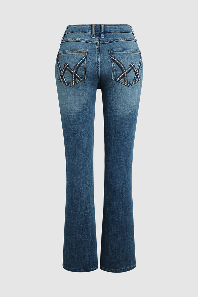 • Stitch Detail Wash Stretchy Low Waist Bootcut Jeans