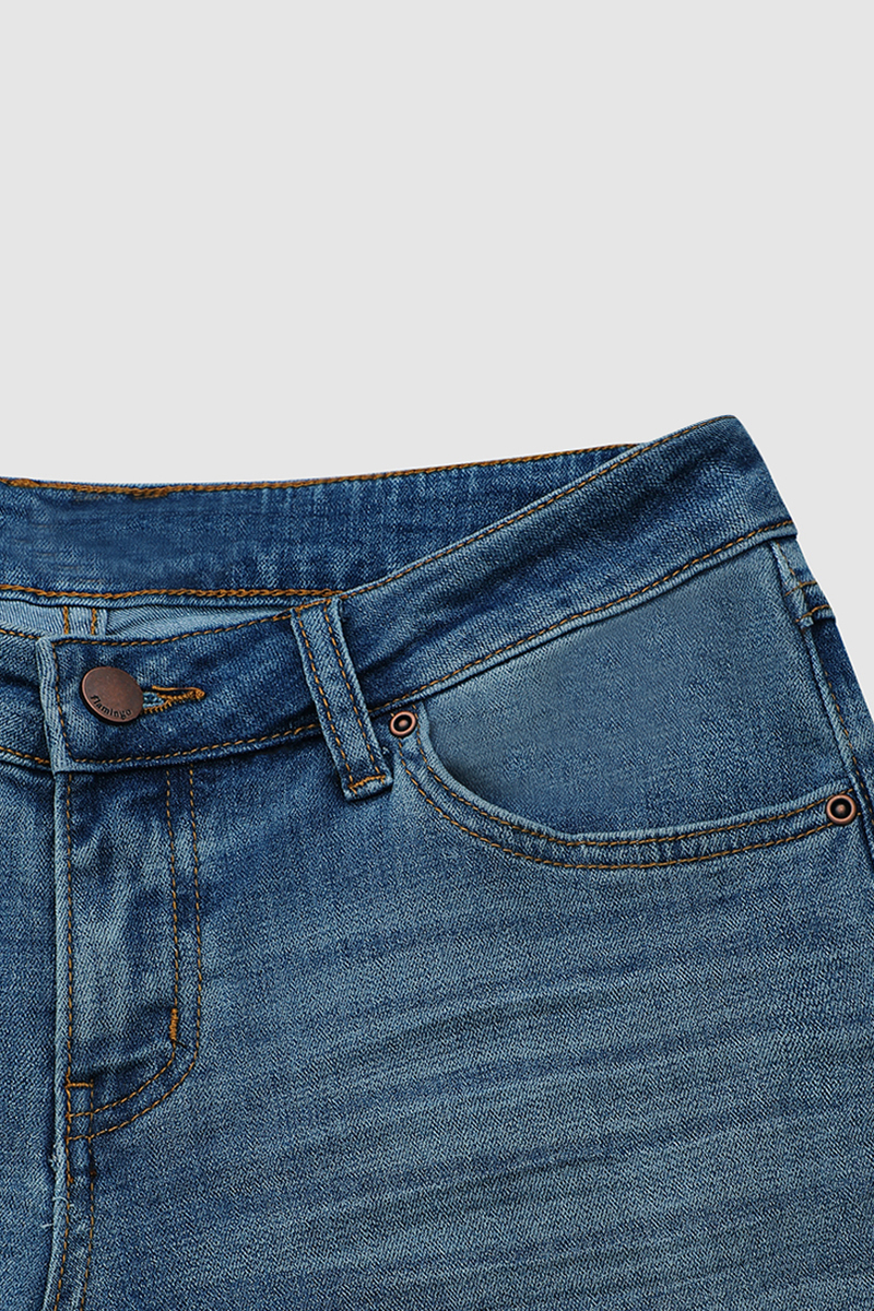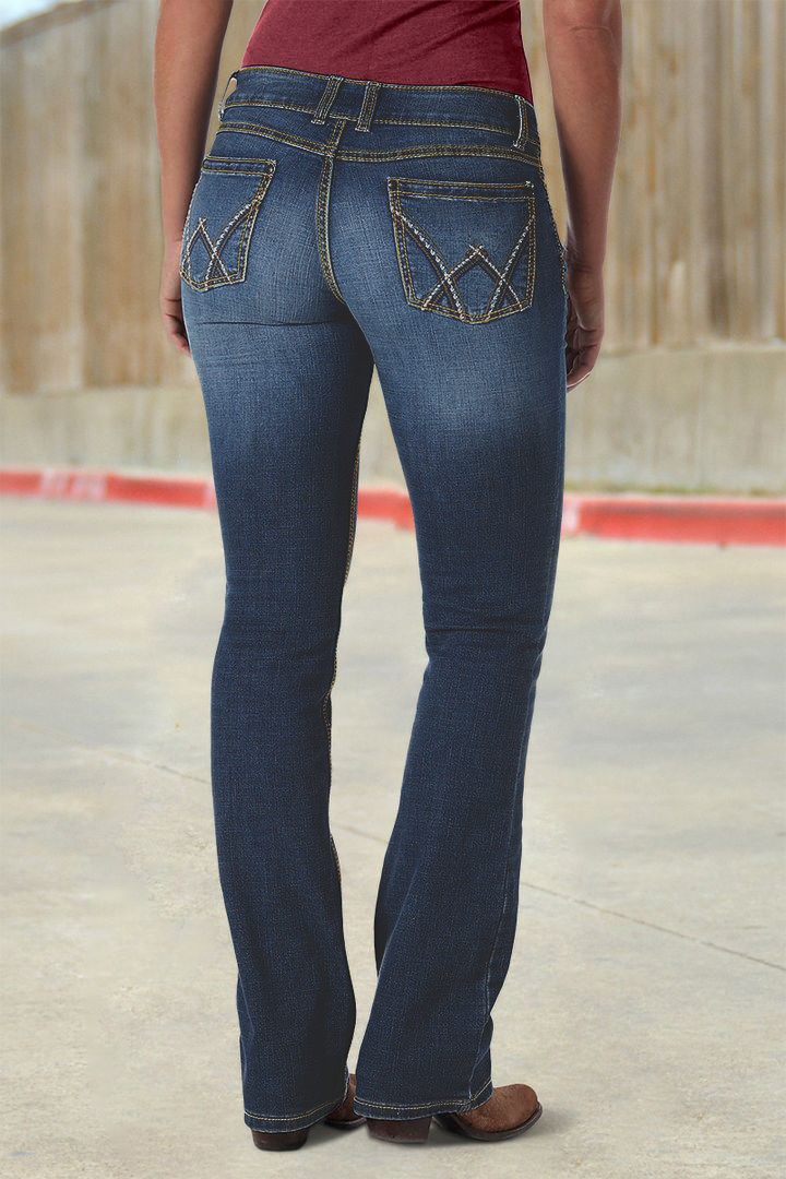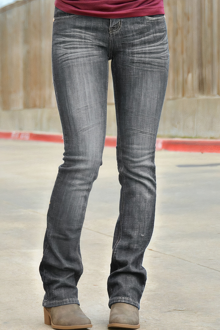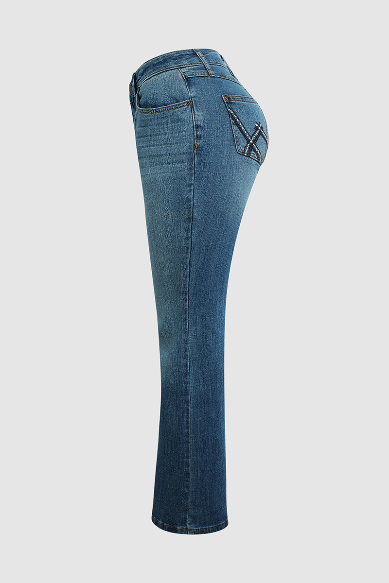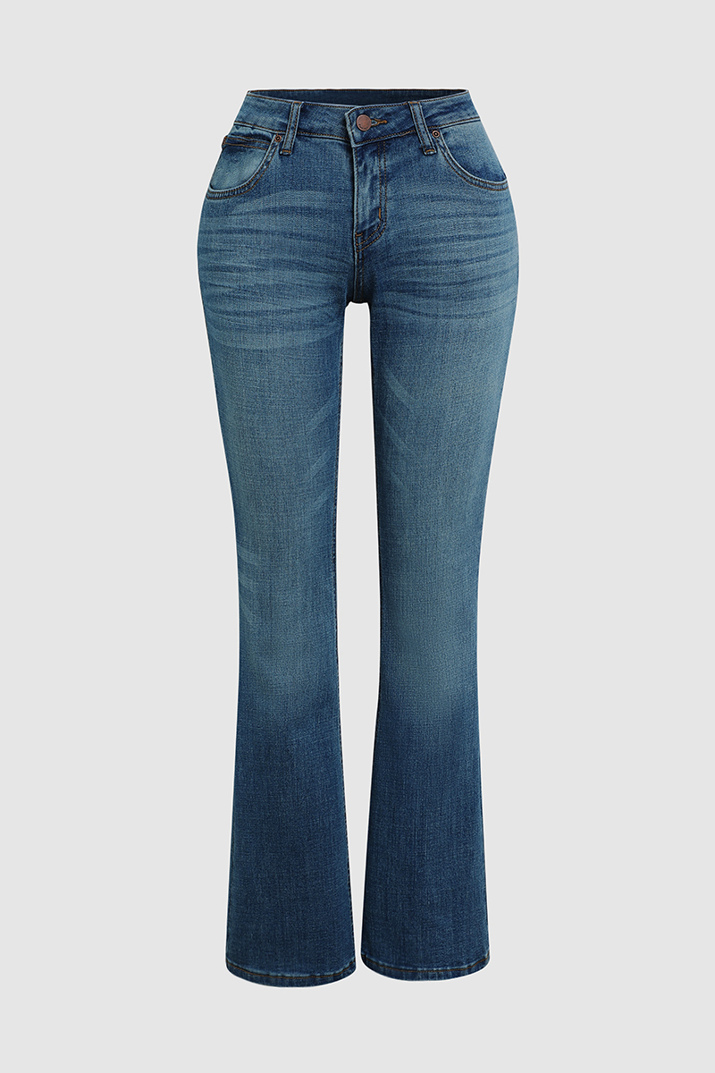 Stitch Detail Wash Stretchy Low Waist Bootcut Jeans