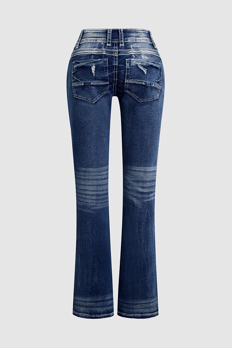 Fitted through the waist and hips and gradually widen from the knee to the ankle. Bootcut jeans have a slightly flared leg opening, which allows for comfortable and easy fitting
