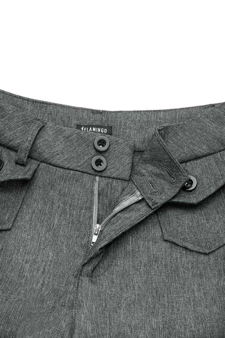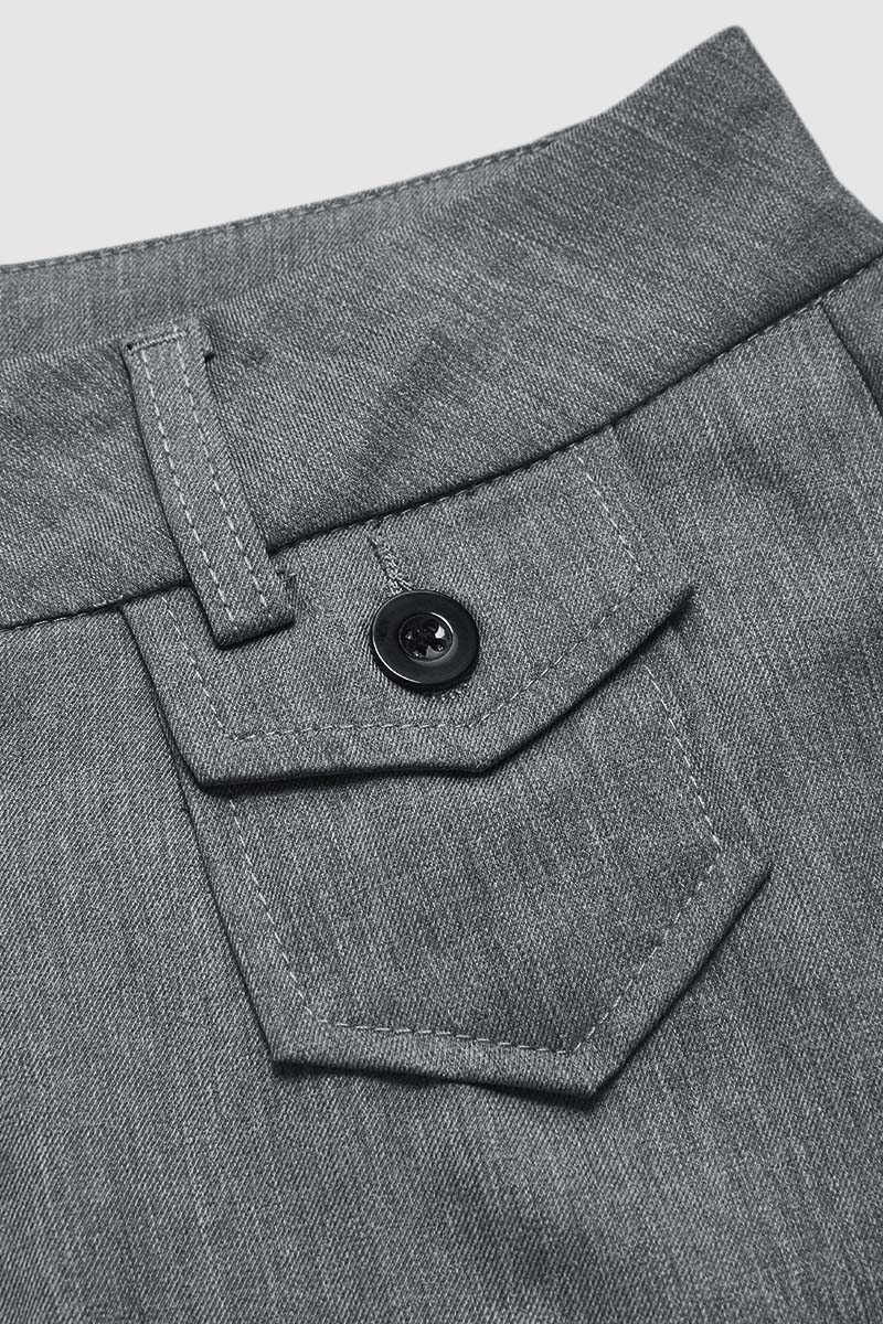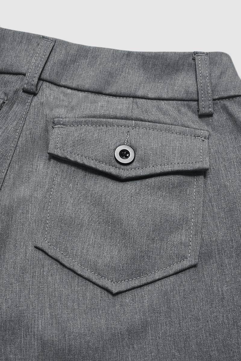 Real pocket for practicality; Button design makes it more fun and vertical; Zipper allows for a secure closure when engaged and a smooth release when disengaged and sometimes serves as a stylish nod to modern aesthetics and a dynamic feature on graments