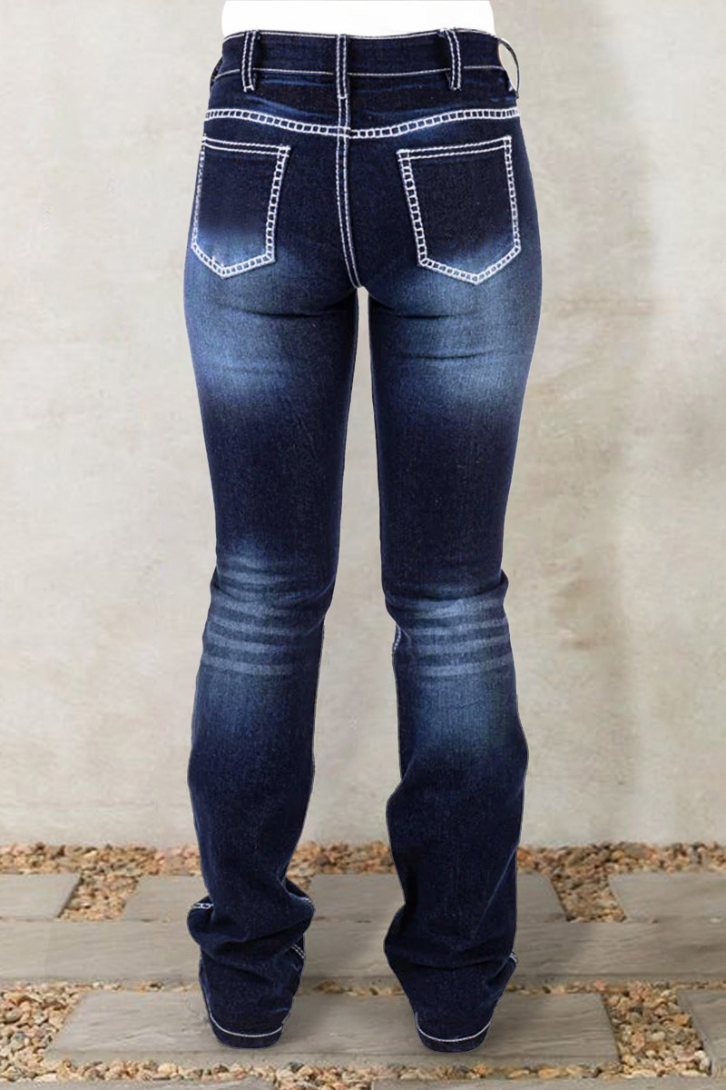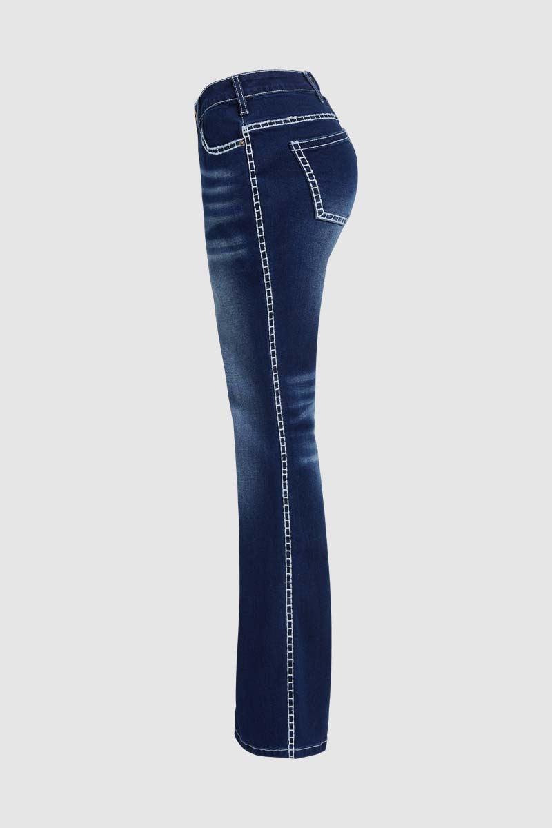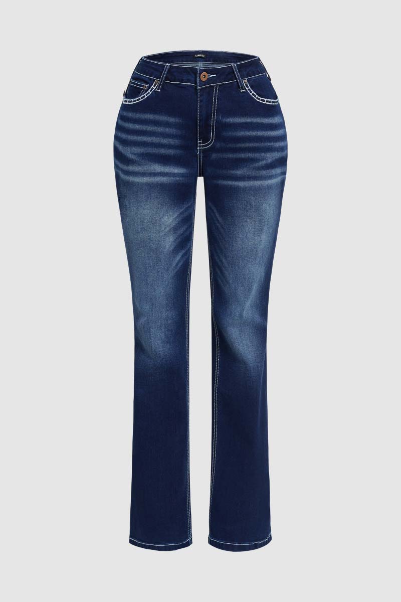 Fitted through the waist and hips and gradually widen from the knee to the ankle. Bootcut jeans have a slightly flared leg opening, which allows for comfortable and easy fitting