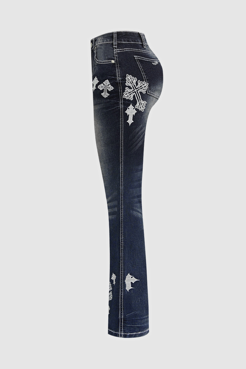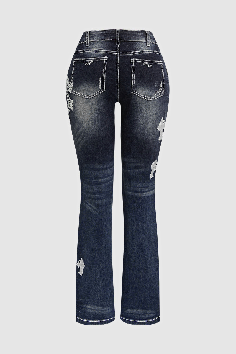 Fitted through the waist and hips and gradually widen from the knee to the ankle. Bootcut jeans have a slightly flared leg opening, which allows for comfortable and easy fitting