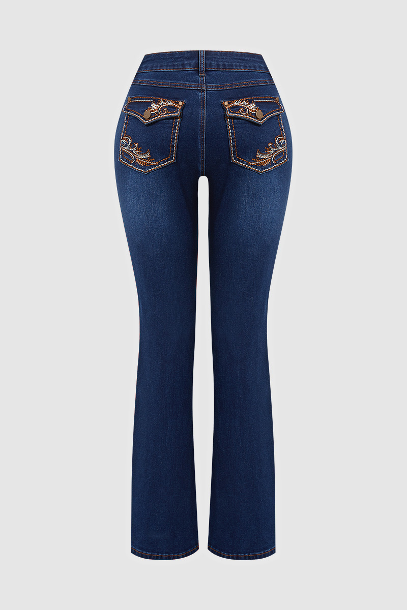 Fitted through the waist and hips and gradually widen from the knee to the ankle. Bootcut jeans have a slightly flared leg opening, which allows for comfortable and easy fitting