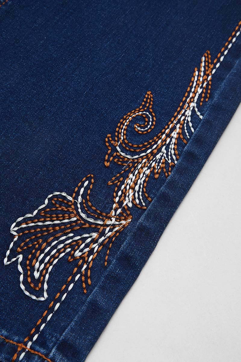 Embroidery, the artful technique of decorating fabric, transforms garment into unique pieces of wearable art and enhances textiles with creativity; Button design makes it more fun and vertical; Real pocket for practicality; Stitch as the specific sewing technique creates decorative elements that contribute to the overall design of garments; Washed material makes it look vintage and easy on the eyes; Zipper allows for a secure closure when engaged and a smooth release when disengaged and sometimes serves as a stylish nod to modern aesthetics and a dynamic feature on graments