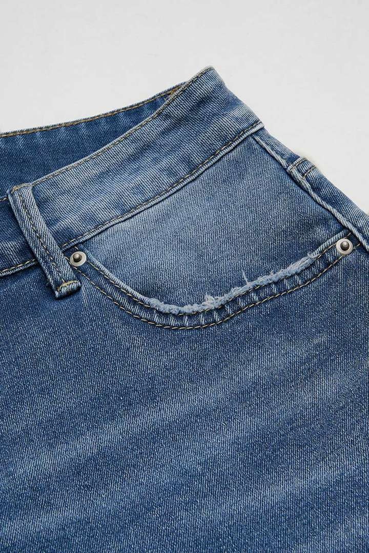 Washed material makes it look vintage and easy on the eyes; Button design makes it more fun and vertical; Raw hem leaves the edges of a garment unfinished, creating a deliberately frayed or unhemmed look for a relaxed and casual aesthetic; Real pocket for practicality; The intentional tears or cuts are strategically placed to give the garment a worn or lived-in look; Zipper allows for a secure closure when engaged and a smooth release when disengaged and sometimes serves as a stylish nod to modern aesthetics and a dynamic feature on graments