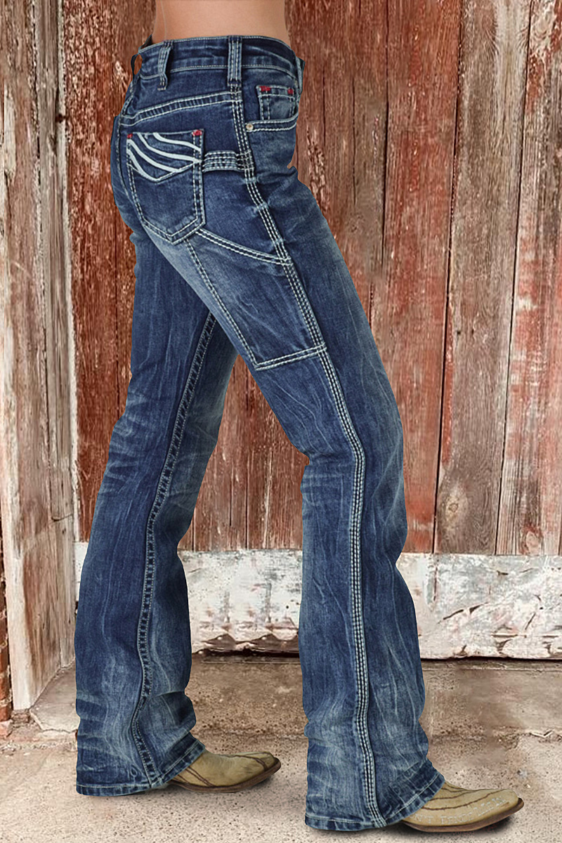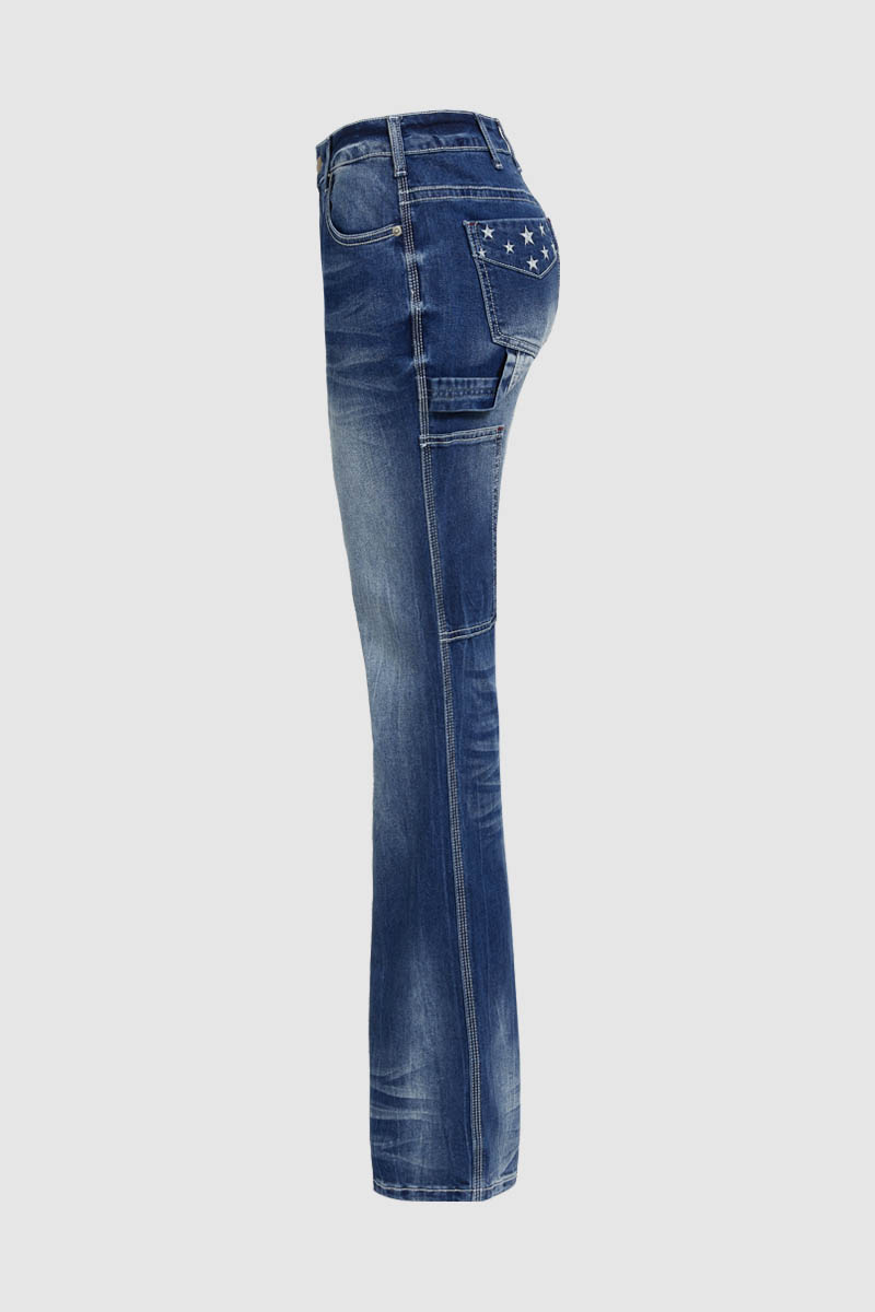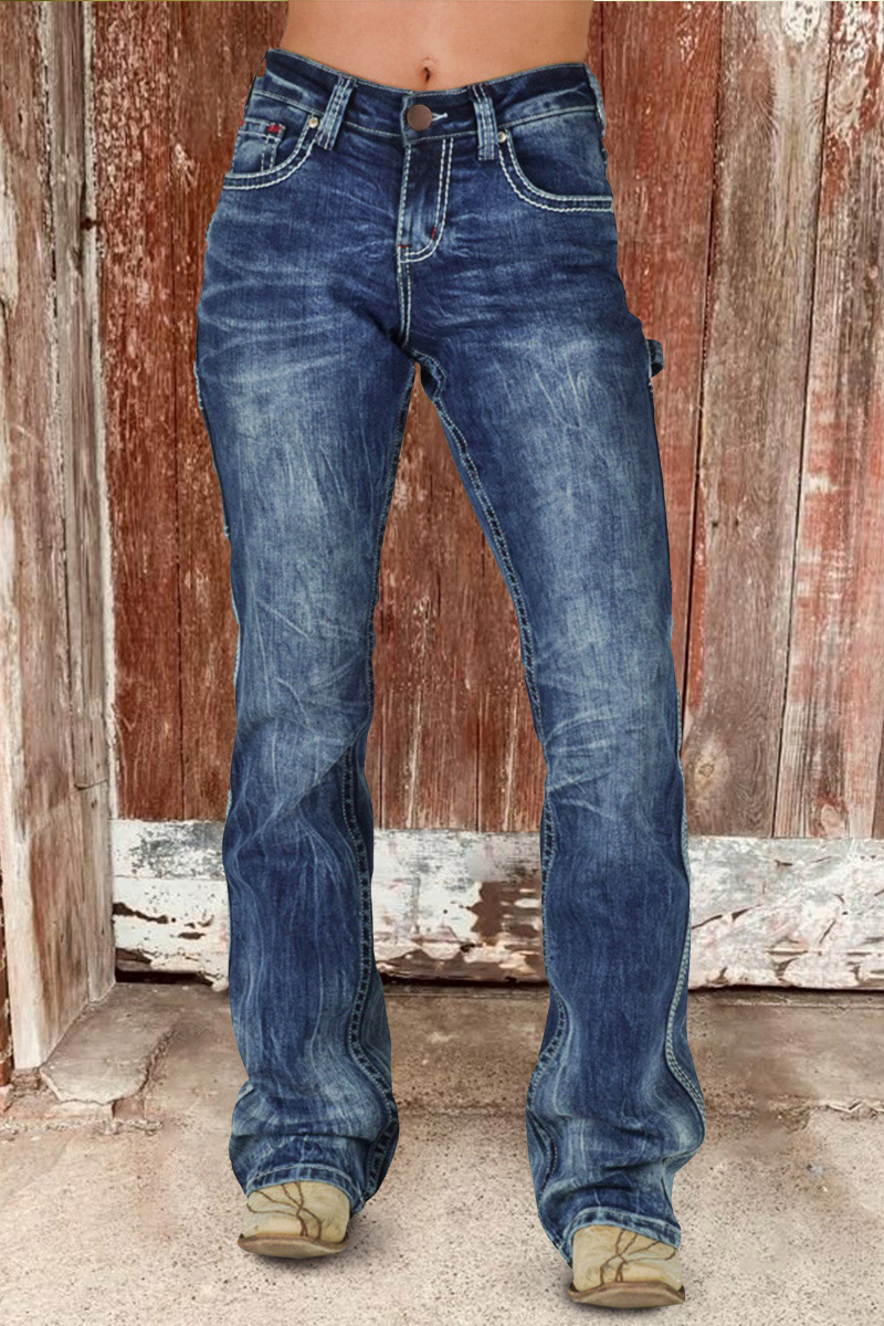 Fitted through the waist and hips and gradually widen from the knee to the ankle. Bootcut jeans have a slightly flared leg opening, which allows for comfortable and easy fitting