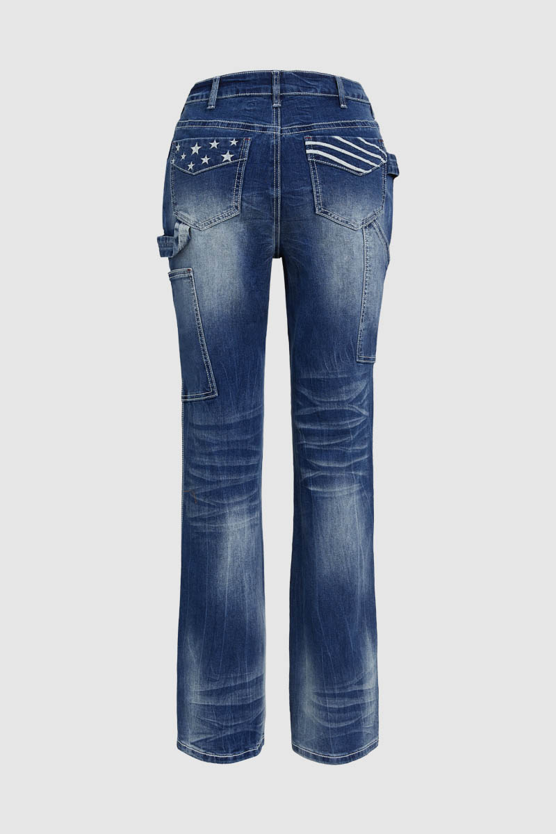 Embroidery, the artful technique of decorating fabric, transforms garment into unique pieces of wearable art and enhances textiles with creativity; Button design makes it more fun and vertical; Real pocket for practicality; Stitch as the specific sewing technique creates decorative elements that contribute to the overall design of garments; Washed material makes it look vintage and easy on the eyes; Zipper allows for a secure closure when engaged and a smooth release when disengaged and sometimes serves as a stylish nod to modern aesthetics and a dynamic feature on graments