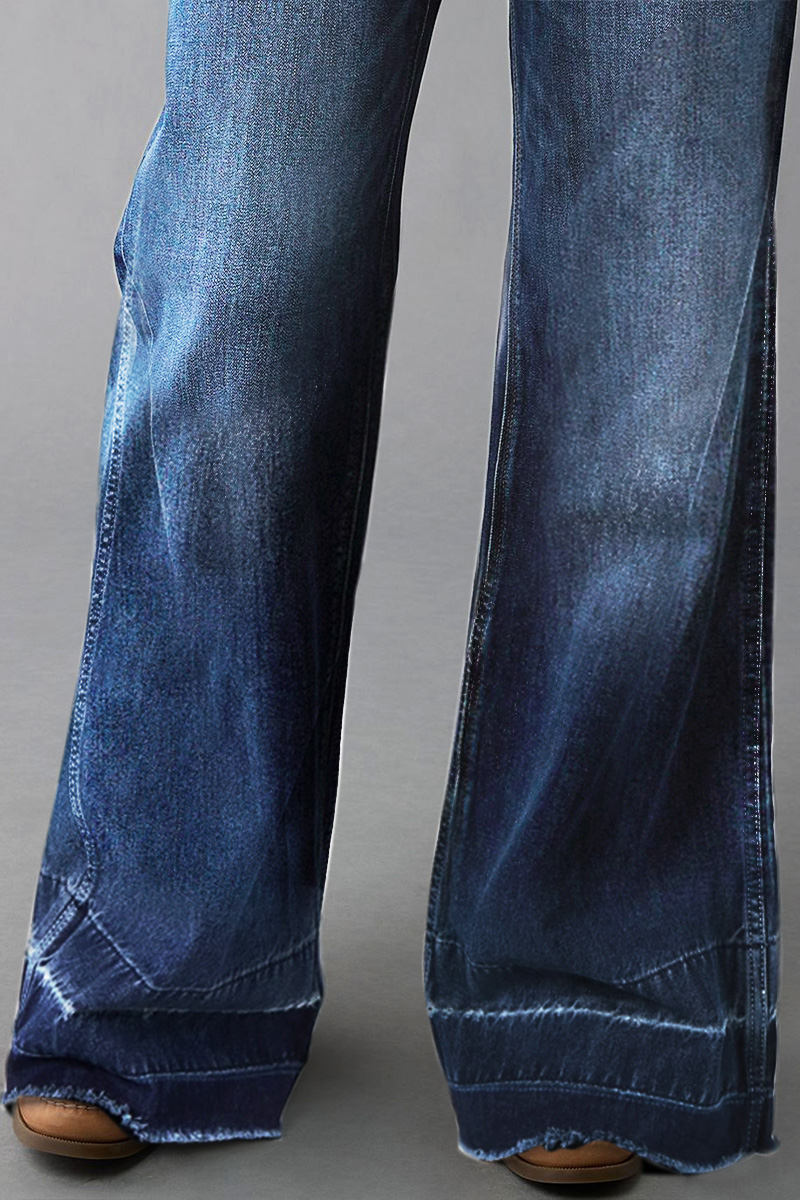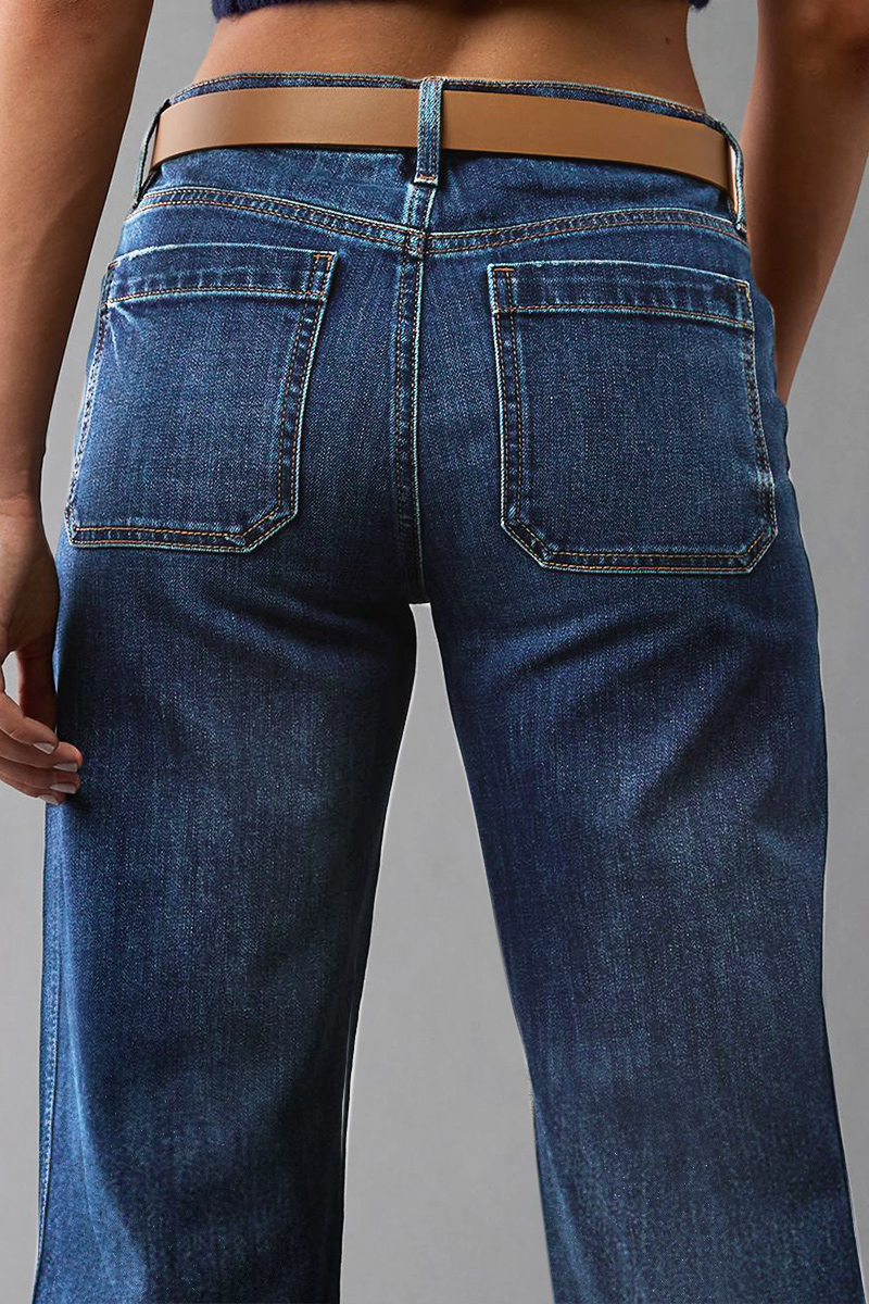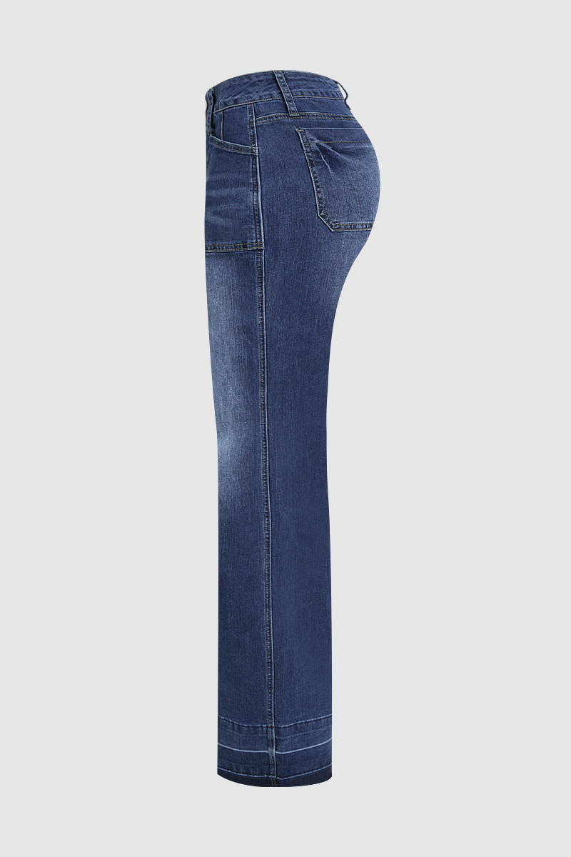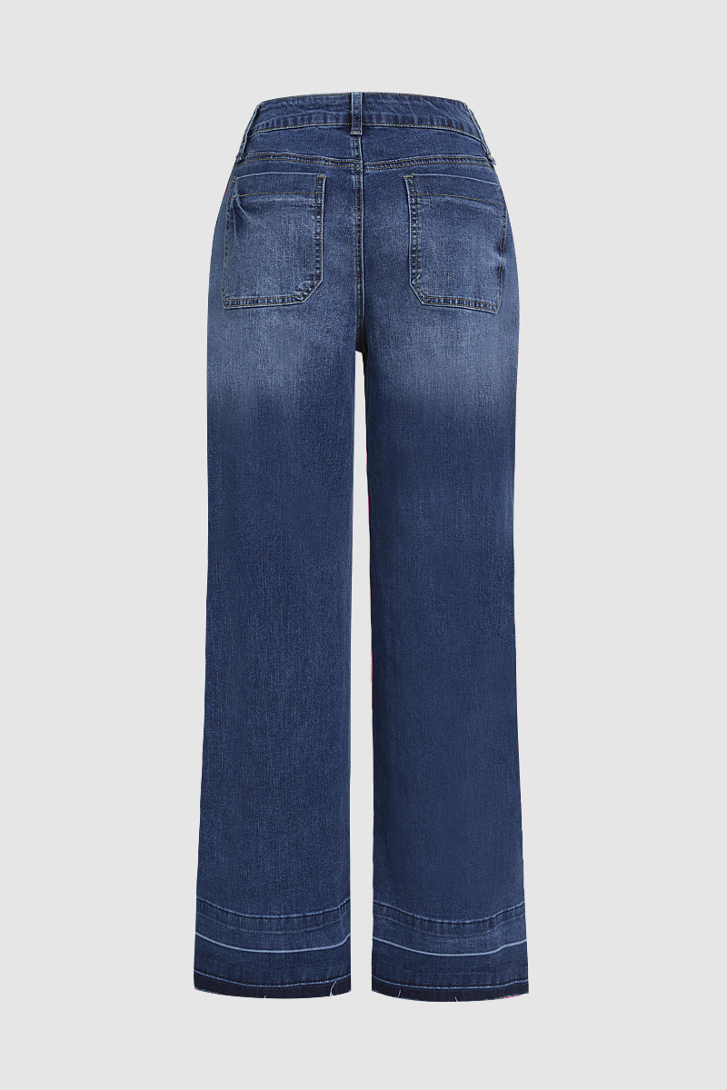 Wash Stitch Detail Mid Waist Wide Leg Jeans Without Belt
