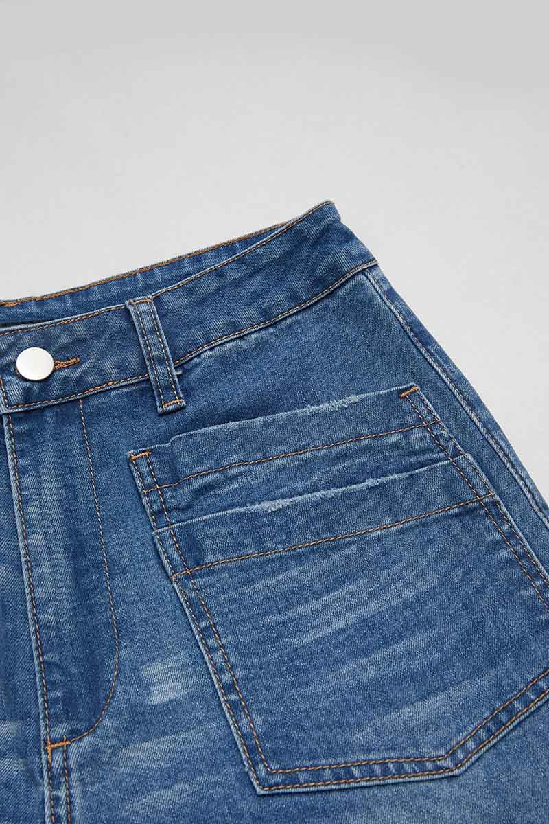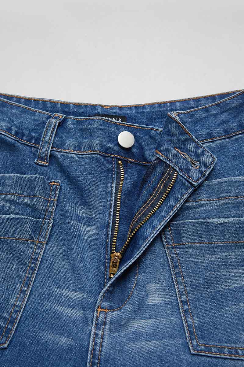 Raw hem leaves the edges of a garment unfinished, creating a deliberately frayed or unhemmed look for a relaxed and casual aesthetic; Button design makes it more fun and vertical; Real pocket for practicality; Stitch as the specific sewing technique creates decorative elements that contribute to the overall design of garments; Washed material makes it look vintage and easy on the eyes; Zipper allows for a secure closure when engaged and a smooth release when disengaged and sometimes serves as a stylish nod to modern aesthetics and a dynamic feature on graments
